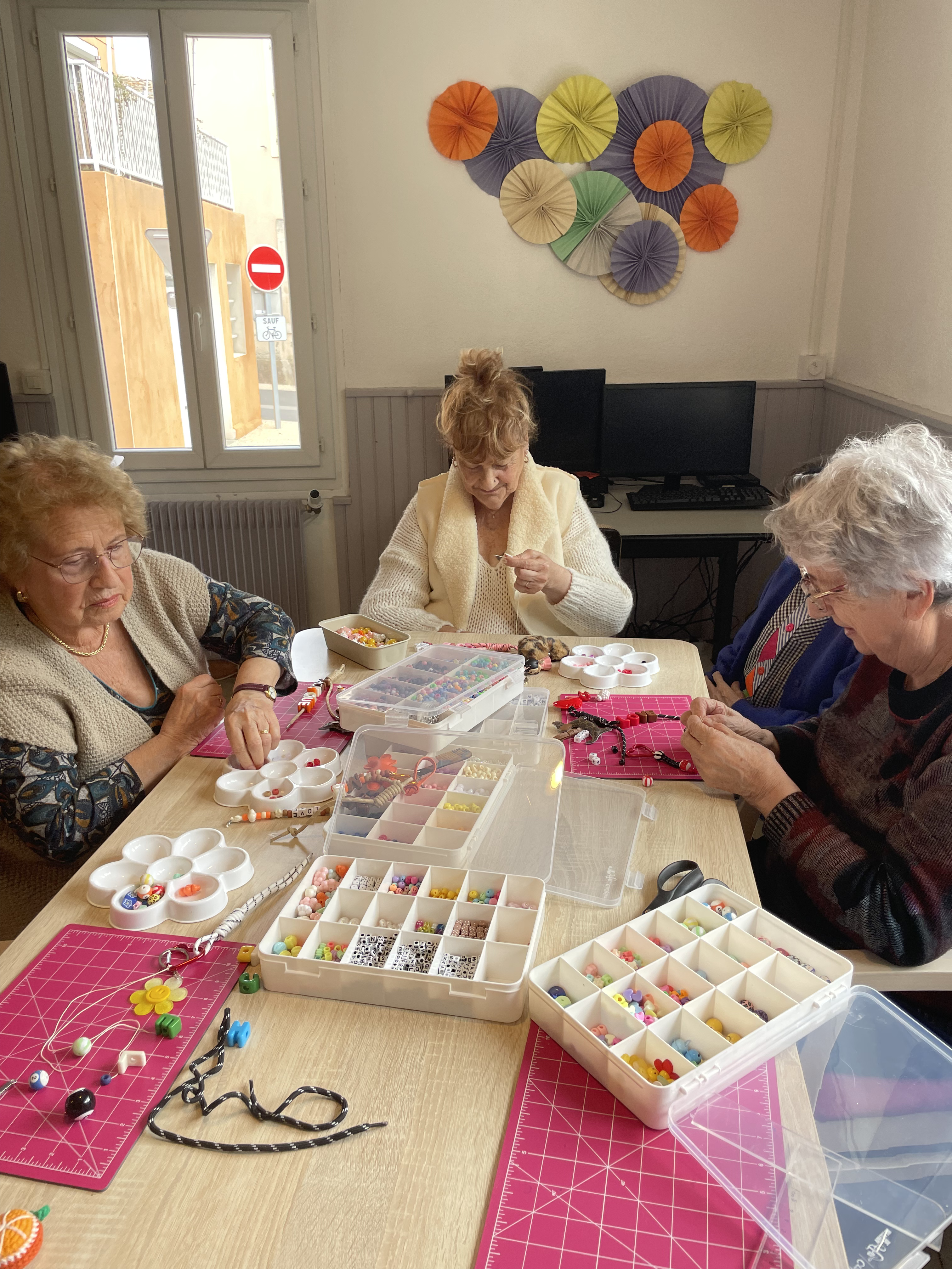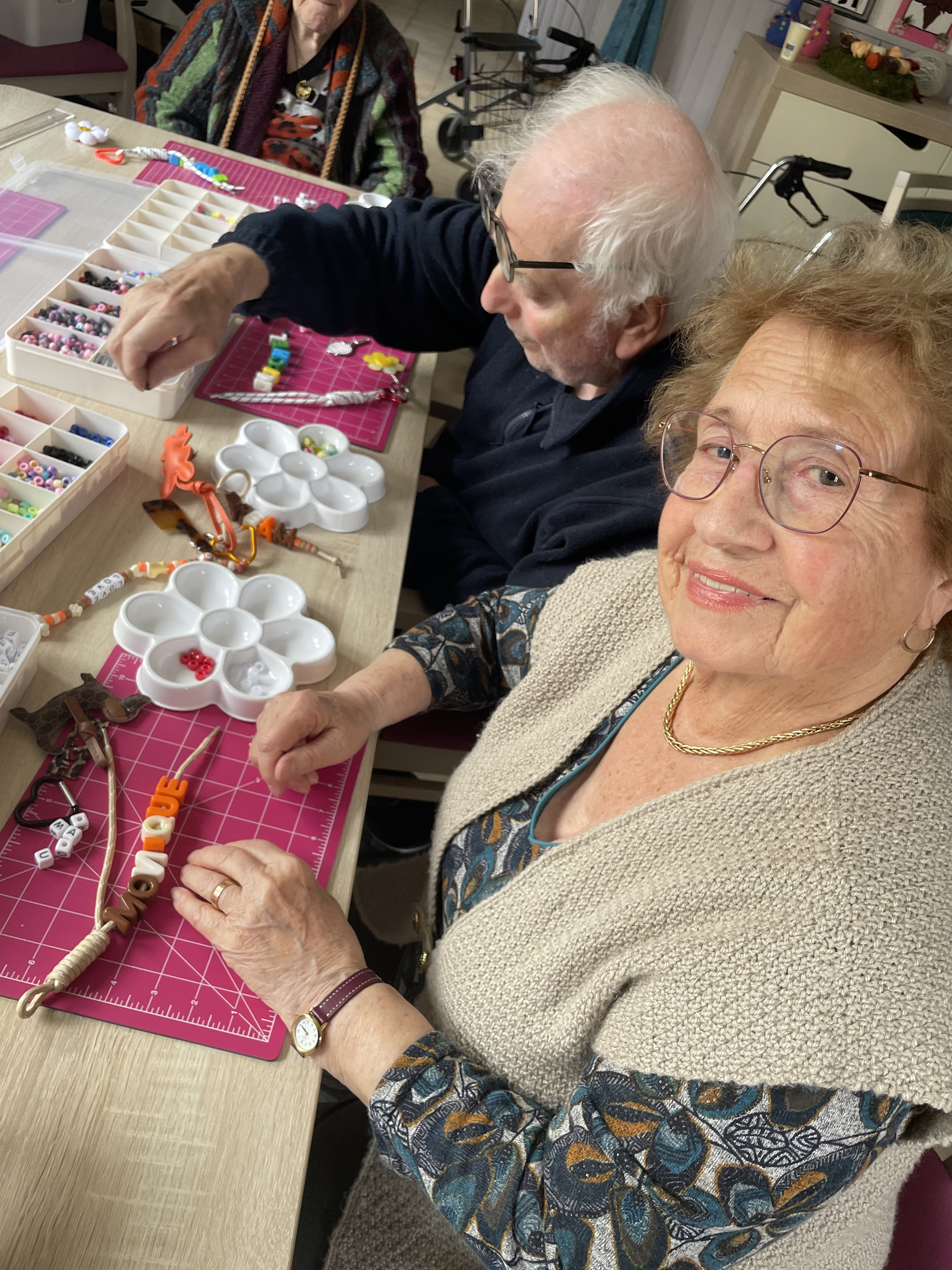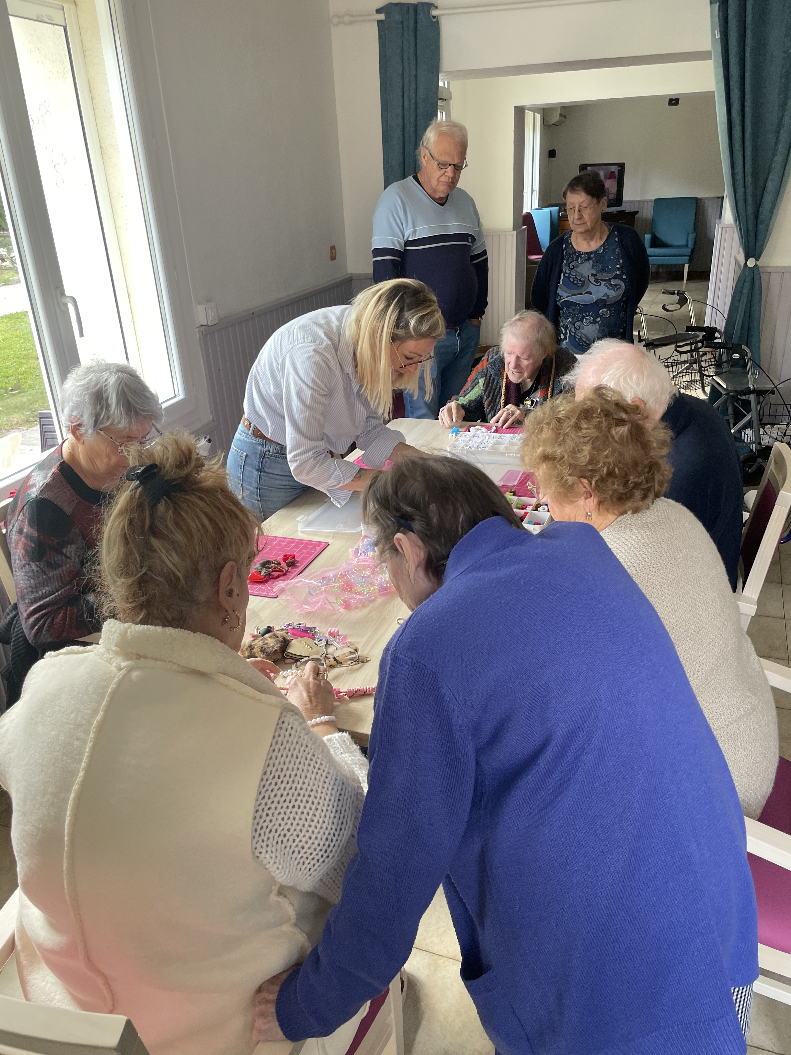 Résumé de la semaine bleue a la Résidence Autonomie : atelier création de bijoux, Loto, marché nordique et yoga.
